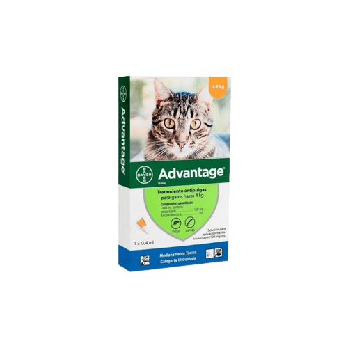 Advantage gatos es una solución tópica (Spot-On). Constituye una efectivo tratamiento antipulgas para gatos al ser el único producto que controla tres estados del ciclo de vida de las pulgas (adultos, larvas y evita la postura de huevos), suspendiendo la producción de huevos de manera inmediata y eliminando las larvas preexistentes en el ambiente.