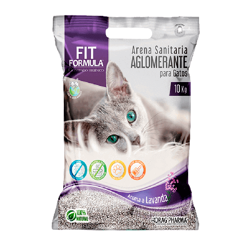 La arena sanitaria FIT FÓRMULA Aglomerante es 100% natural, a base de Bentonita Sódica, de granulación fina, y 0% humedad, sin procesos ni agregados químicos que puedan dañar la salud de las mascotas ni de las personas. Comúnmente dentro de las raciones de alimentos de las mascotas se encuentran toxinas que suelen eliminarse con los excremento