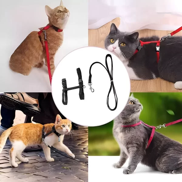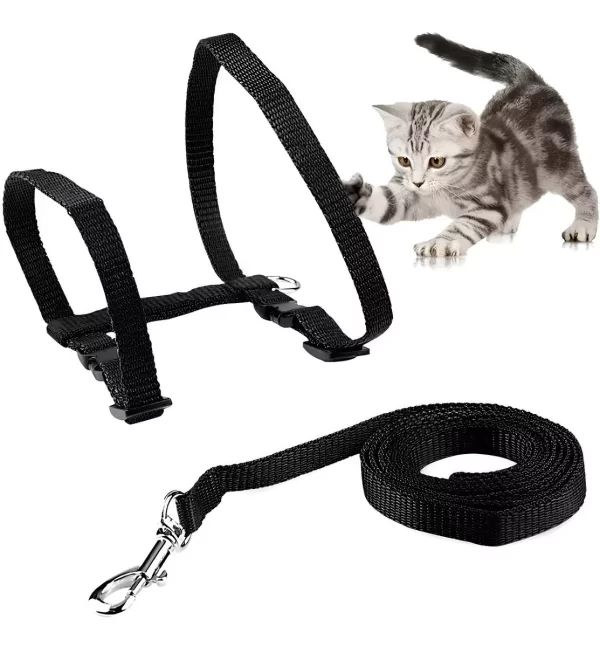 -Este arnés para gatos con correa utiliza un diseño en forma de H, hecho de material de poliéster suave, cómodo de llevar, que tiene un collar y un cofre que no lastimará el cuello del gato.