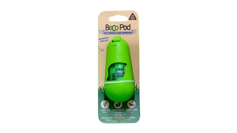 Un dispensador de bolsas de fecha liviano que se sujeta a la mayoría de las correas. Está hecho de nuestro material biohíbrido que contiene almidón de maíz y bambú. Se adapta a todos los rollos de bolsas de feca estándar y se incluyen 15 bolsas de fecha biodegradables. Este dispensador se amarra alrededor de la correa para sujetarlo de forma segura sin ningún problema.