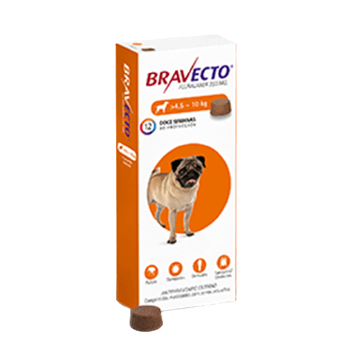 Bravecto 4,5 a 10 kg: Comprimidos masticables de uso oral en perros para el control de pulgas y garrapatas, los comprimidos no se deben romper o dividir.