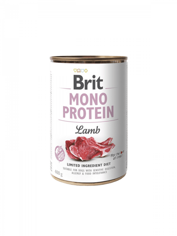 - Lata Brit Mono Protein Lamb es un alimento húmedo indicado para todos los perros.