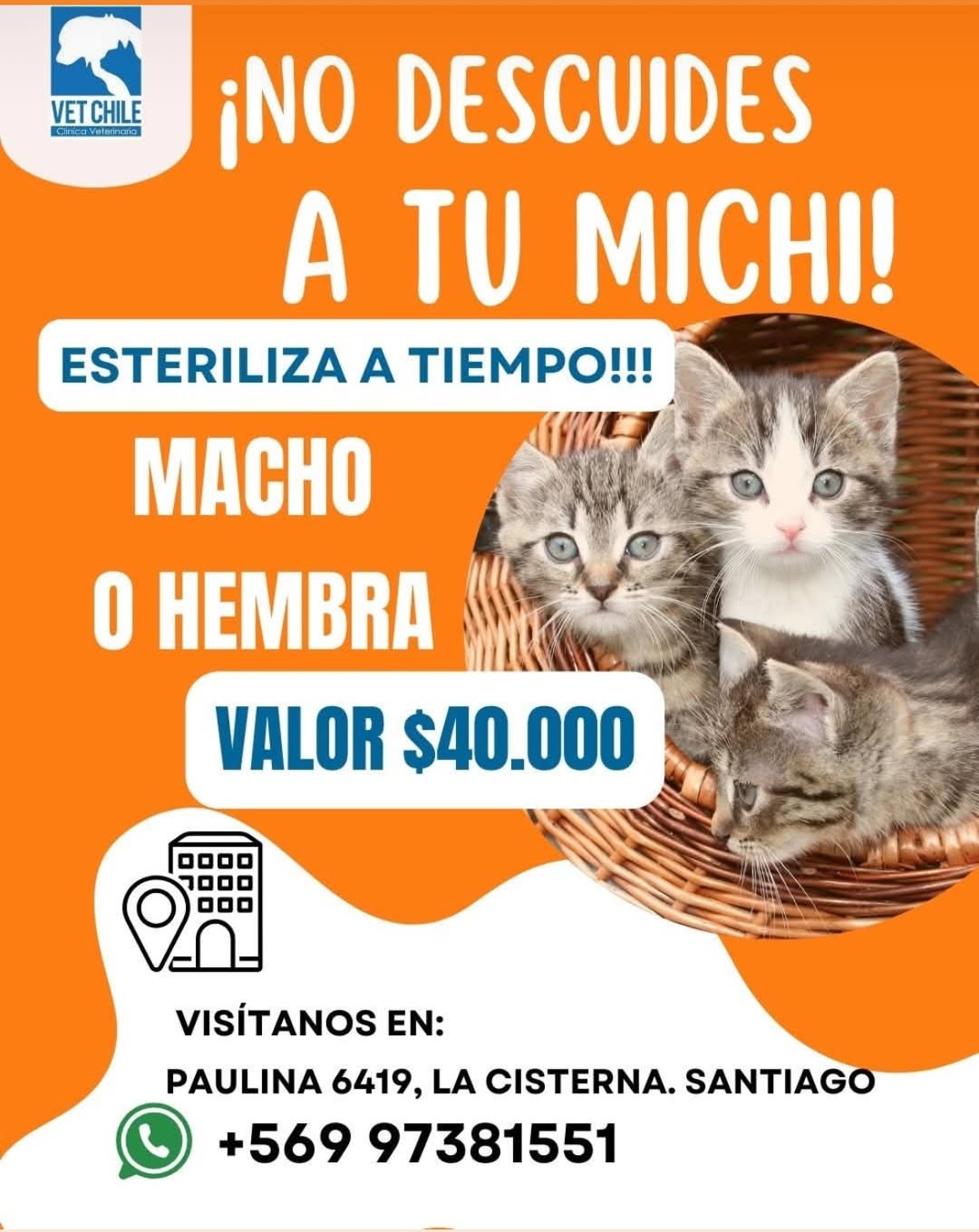 ¡Asegura la salud y felicidad de tu gatito agendando su cita! Llama al 📞 +56 9 9738 1551 o escríbenos por WhatsApp al 📱 +56 9 9738 1551. Envíanos un mensaje al WhatsApp para enviar requisitos y días disponibles para esterilización. Recuerda que los cupos son limitados por día, solo de martes a viernes.