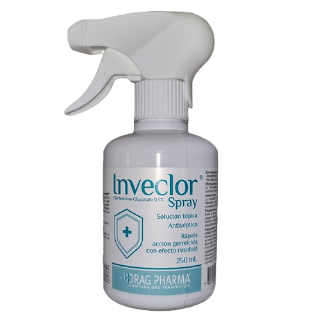 Inveclor® Spray, frotar con algodón o gasa y dejar secar sin enjuagar.