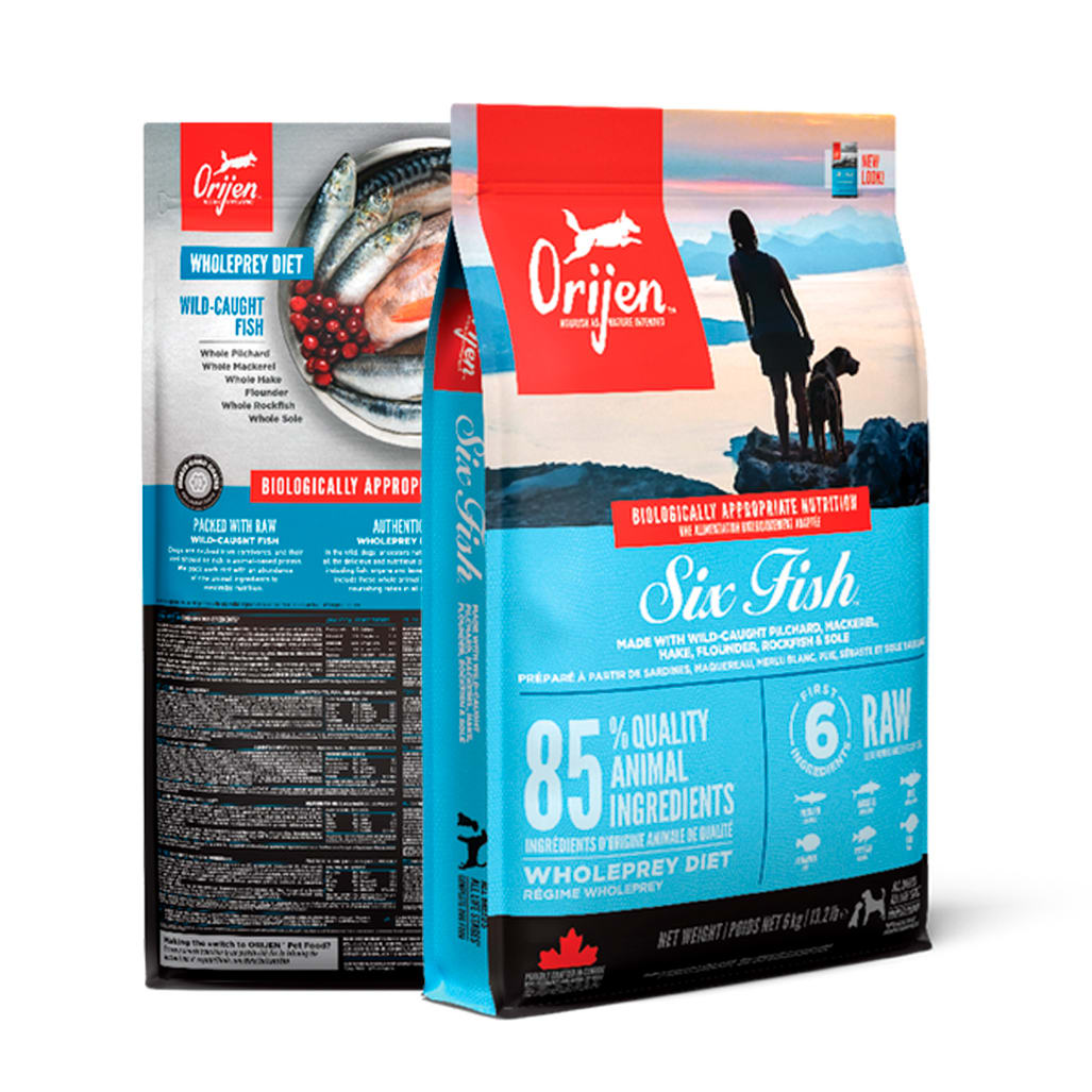 Con un 38% de abundantes proteínas nutritivas y carbohidratos de bajo índice glucémico limitados al 19%, ORIJEN SIX FISH nutre a los perros en todas las etapas de la vida de acuerdo con sus necesidades evolutivas y biológicas.