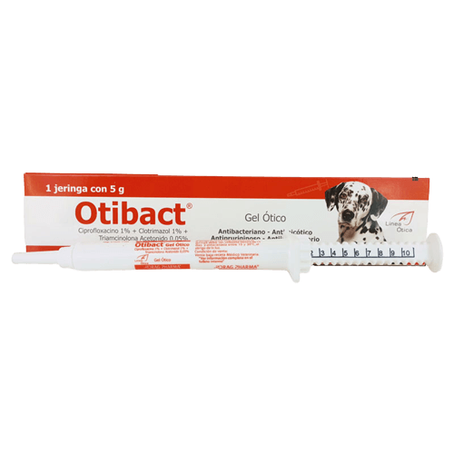 OTIBACT® Gel Ótico, está indicado para el tratamiento de otitis externas agudas y crónicas causadas por infección mixta de Staphylococcus intermedius ó Pseudomonas aeruginosa y Malassezia pachydermatis, sensibles a los principios activos de la asociación. Su efecto antiinflamatorio, permite disminuir los niveles de eritema, prurito y secreción en los conductos auditivos externos de perros.