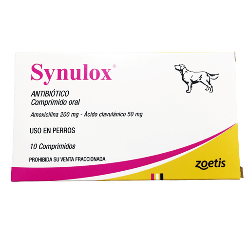 Synulox es un antibiótico indicado para el tratamiento de infecciones de piel y tejidos blandos, infecciones de las vías respiratorias superiores e inferiores, infecciones del tracto digestivo, así como en enfermedades urogenitales y periodontales (gingivitis y periodontitis) en perros.